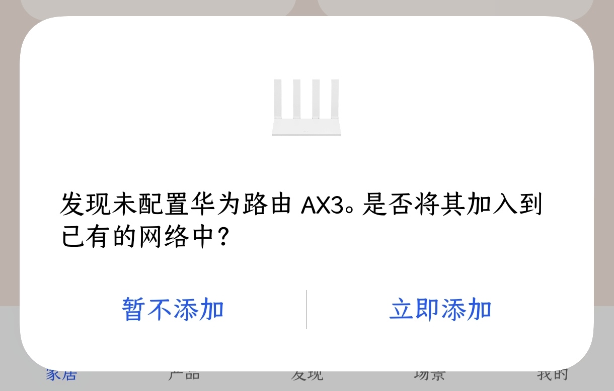 拿出路由,上电,打开智慧生活APP,立马就识别出了AX3,而且可以直接加入已配置好的网络中,这点好评!