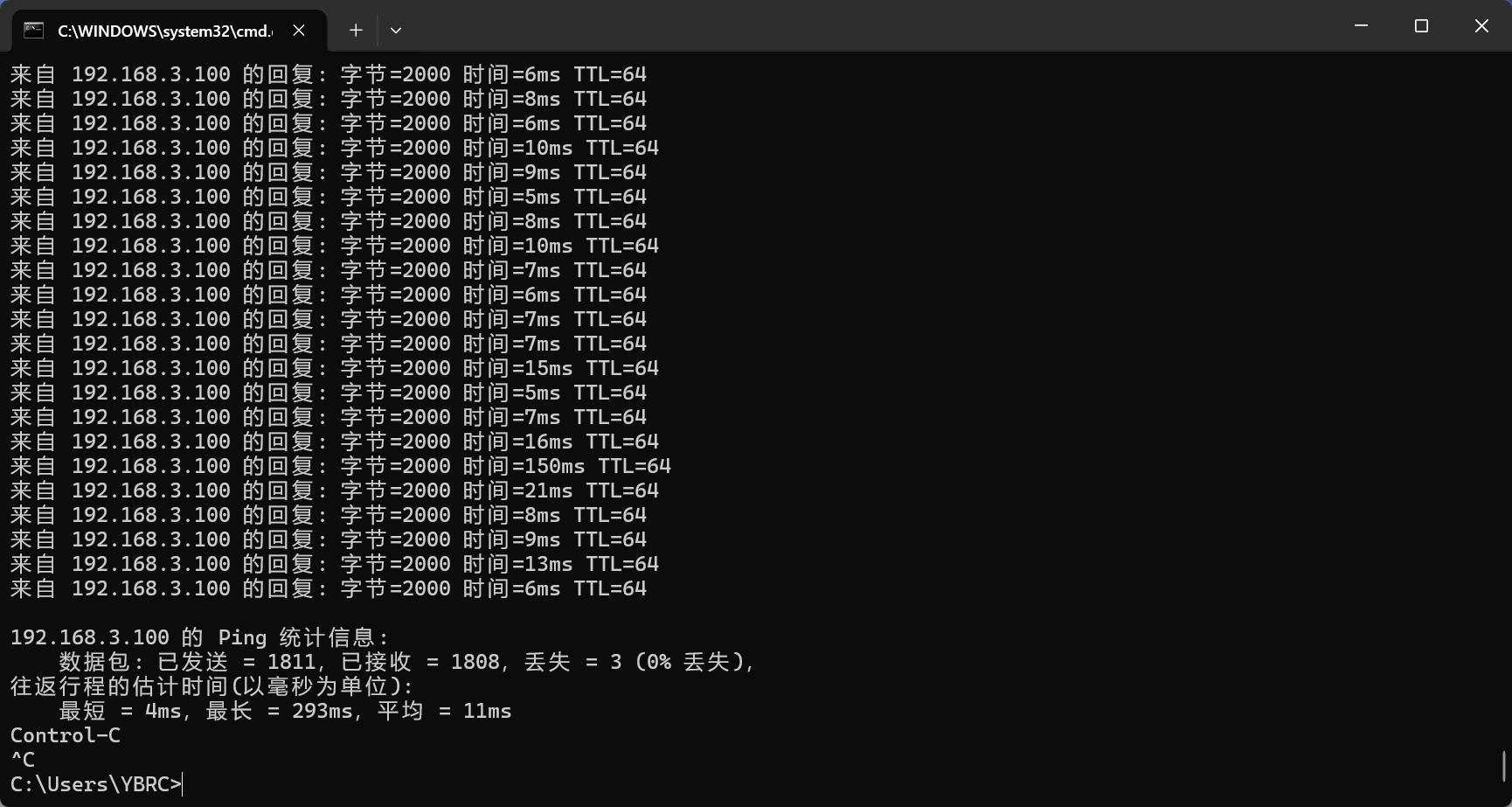 当时就开始用电脑Ping NAS(有线连接至主路由) 2000字节,总共Ping了1800个包,丢失3个,怎么说呢,不算稳定,但是能用。